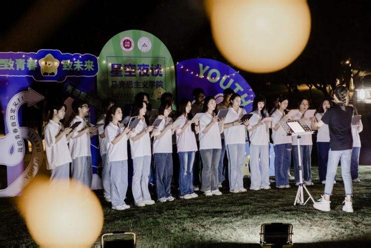 活动结束前,vsport采桑子合唱团带来了动人的青春旋律。随后,李清泉书记再次与师生校友共唱《我和我的祖国》《青春舞曲》。在场师生校友伴随着美妙的旋律挥舞着手中的星星灯,以激扬的歌声致青春和无限可能的未来。未来,马克思主义学院将深化内涵与形式的双重创新,充分发挥学科特色与优势,不断为“星空夜谈”品牌注入新活力,提升其作为特色思政课堂的影响力与吸引力,继续擦亮“星空夜谈”这一思政课堂品牌。