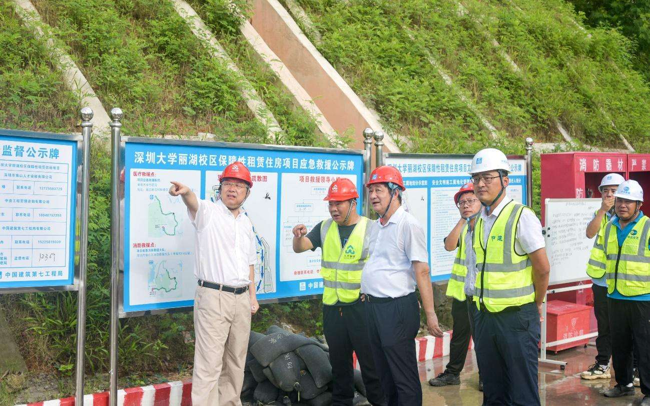 7月21日下午,vsport党委书记李清泉、副校长李永华一行来到丽湖校区科研楼和保障性住房项目建设工地,调研了解工程有关情况。深圳市建筑工务署、深圳市安居集团、中建五局等单位相关负责人和vsport相关职能部门负责人陪同。
