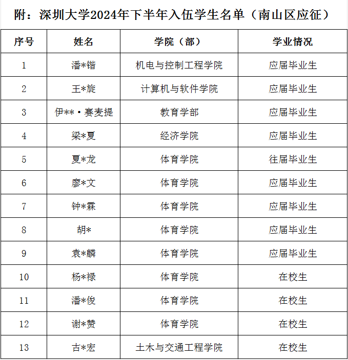2024年下半年征兵工作启动以来,党委武装部认真贯彻落实上级各项工作部署,提前谋划,主动作为,多渠道、多形式、全方位开展政策宣传和国防动员,广泛调动大学生参军热情;先后组织了五批次初检,六批次复查,累计组织126人初检,146人次复查,39人政治考核,经过层层筛选,最终我校13名学生脱颖而出成功入伍。强国必须强军,军强才能国安。今后,党委武装部将进一步创新并加强国防教育举措,提升思政育人成效,持续提升征集新兵、服务老兵的工作能力和水平,吸引更多优秀大学生投身实现强军梦的伟大实践中,教育引导全体学生立志成才、矢志报国,为实现建军一百年奋斗目标,开创国防和军队现代化新局面贡献“深大力量”。