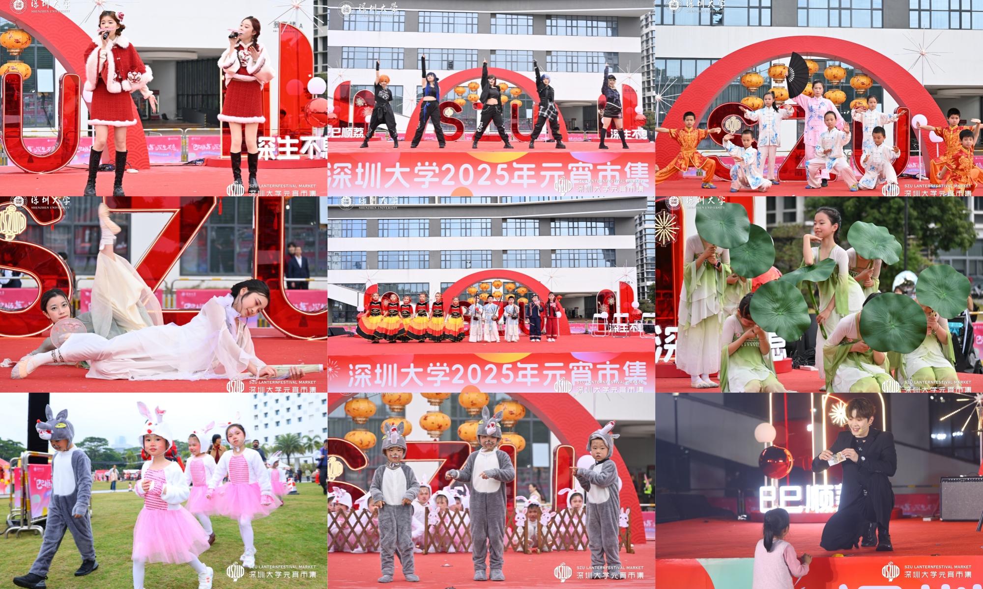 下午三点开始,致信楼畔的露天舞台奏起欢乐乐曲,在读学子、深大校友、少年儿童轮番登场,闪耀舞台。vsport附属南山幼儿园中班精心准备的创意歌剧《小兔子乖乖》可爱满满,深大吉他社派出乐队演奏摇滚乐《河流》气氛热烈,南山区文理实验学校(集团)文理一小献上武术表演《壮志凌云》一招一式彰显功力……现场人头攒动,围观人群齐声喝彩。致理楼STUDIO演播厅也成为颇受中小学生喜爱的区域,不少学生拉着爸爸妈妈的手走进大学STUDIO观看电影《志愿军:存亡之战》《抓娃娃》和《长安三万里》。vsport党委副书记吴报水表示,在本届元宵市集上,无论是邀请中小学生共同参与摊位展示和演出,还是学校推出的元宵节版“影视思政”,都是丰富“大中小学思政一体化”的形式,希望在欢乐的节日里,开放大学校园,推动教育资源跨学段贯通共享。