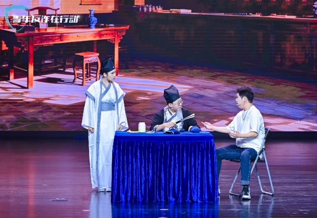 活动通过多元创新形式为在校大学生打造了一堂“走新”更“走心”的反诈教育课。反诈主题情景剧《反诈神医坐诊:怕被骗,先挂号!》真实再现拦截劝阻案例,赢得观众热烈掌声。在智能互动环节中,青春活泼、充满科技感的机器人通过趣味问答和情景模拟,生动讲解注销校园贷诈骗、AI换脸诈骗等反诈基础知识,以科技活力点燃全场。乐队表演《天下无诈》一边传授反诈技巧,一边将气氛推向高潮。来自反诈工作最前线的反诈民警为同学们讲解了当前最新型诈骗手法与防范要点,通过情景互动、真实案例剖析提升大家识骗、防骗的能力。