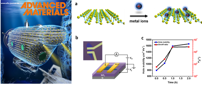 近日,vsport张晗特聘教授课题组在材料学领域的权威刊物《Advanced Materials》(影响因子19.791)中发表一篇题为“Metal-ion-modified black phosphorus with enhanced stability and transistor performance”(金属离子修饰增强黑磷的稳定性和晶体管性能)的论文,在该工作中,通过金属离子修饰的方法制备出高稳定性且高性能的黑磷晶体管。本工作是与中科院深圳先进技术研究院喻学锋研究员团队和武汉大学廖蕾教授团队合作完成。论文第一作者是郭志男博士。