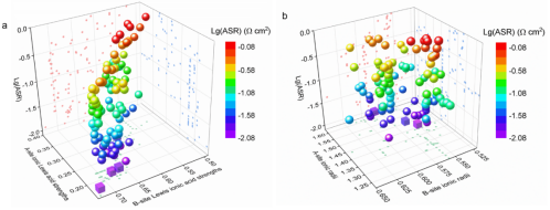 基于上述研究思考,该研究创新将机器学习、理论计算与固体氧化物燃料电池阴极材料设计相结合,实现了快速、有效的从庞大的钙钛矿组分中筛选高活性阴极材料。该研究阐明了钙钛矿氧化物路易斯酸性调控策略提升本征活性的机理,揭示了路易斯酸性在A位和B位离子的极化分布引起电子对的偏移,进而降低氧空位的生成能和迁移能垒的机制。该成果为团队正在攻关的“近零碳排放直接煤燃料电池发电技术”提供了理论依据与技术支持。