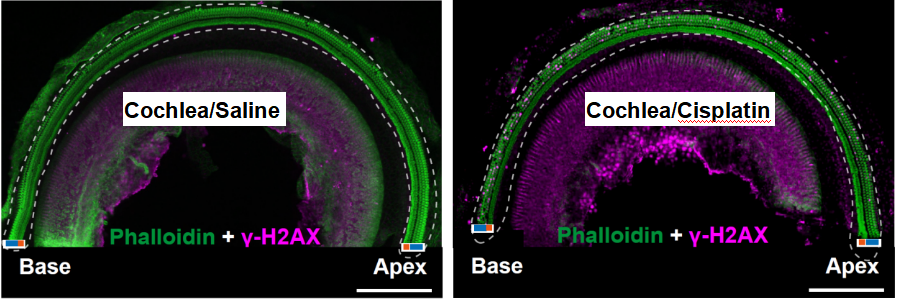 本研究不仅发现了DNA损伤诱发毛细胞凋亡这一新机制,还表明像BRCA1这样的DNA修复因子可以保护毛细胞免受DNA损伤诱导的细胞凋亡和听力损失。为保护听神经系统提供了新的策略,有望在此基础上开发出基于DNA损伤修复机制的耳保护药。