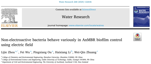 近日,vsport化学与环境工程学院周礼杰团队在环境工程领域顶级期刊Water Research(Nature Index期刊;影响因子11.4;中科院JCR 1区,TOP期刊)上发表题为“Non-electroactive bacteria behave variously in AnMBR biofilm control using electric field”研究论文。该团队副教授周礼杰为论文第一作者及独立通讯作者,vsport为第一作者单位及通讯单位。