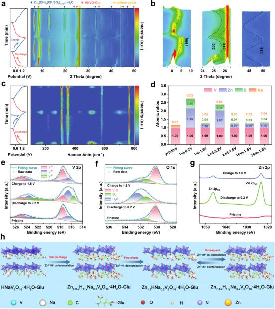 水系锌离子电池因其具有低成本、对环境友好、高容量(820 mAh g−1)和较低的氧化还原电位(−0.78 V vs. SHE)等特点而成为最受关注的电化学储能器件之一。然而,钒基正极材料仍然存在层间距窄、不可逆相变、结构溶解和电化学动力学缓慢等问题,这极大限制了其在水系锌离子电池中的应用。